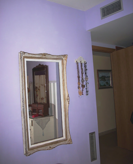 Zona de vestidor de la habitación principal, al lado el baño suite. Actualmente el armario se ha forrado con vinilo en tono rosa palo y papel plateado.