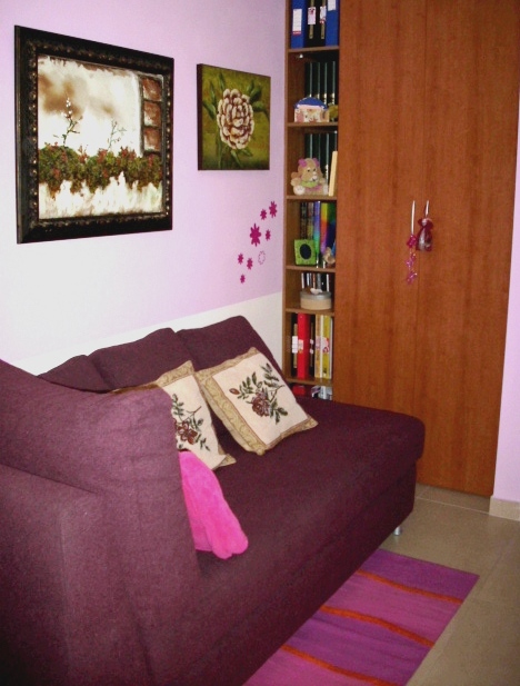 Salón en tonos malva. Es un poco atrevido y solo apto para espacios con mucha luz, por eso, en la nueva remodelación opté por tonos más claros.
