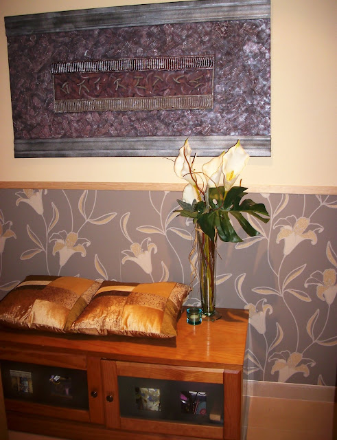 Detalle del papel pintado, es de Leroy Merlin, este tipo de papel es resultón sin resultar caro, este es vinílico, lavable y con relieve.